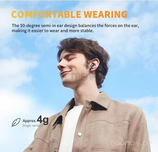 Наушники получили эргономичную форму вкладышей, адаптированную под форму ушной раковины, и легкий вес — 4 г. Все это обеспечивает идеальную посадку и комфортное использование даже на протяжении длительного времени.