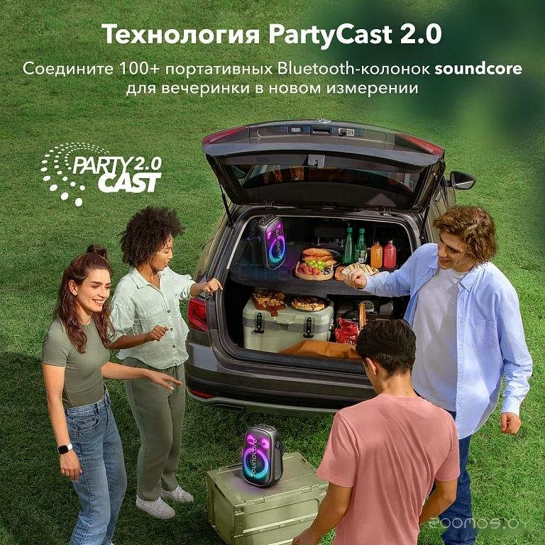 Технология PartyCast 2.0 позволяет подключить более 100 колонок к одному устройству, полностью синхронизировав их звучание и световое оформление.