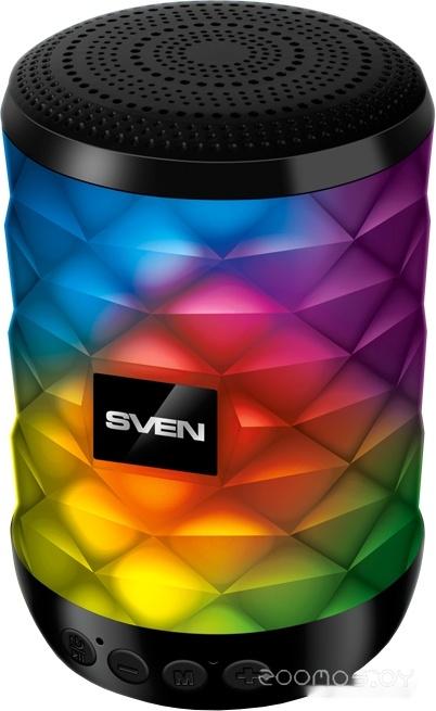 Линейка портативной акустики от SVEN пополнилась устройством, по праву претендующим на звание самого яркого и оригинального из всех своих собратьев. Первое, что привлекает внимание в PS-55 — это, конечно, округлый корпус с боковой поверхностью полигональной формы, под которой скрывается разноцветная динамическая подсветка.