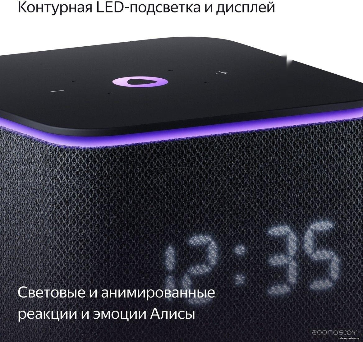 Активная контурная LED-подсветка и анимированные реакции на дисплее добавляют эмоций, когда слушаете музыку и общаетесь с Алисой. LED-дисплей показывает время и температуру Функция «Быстрые команды» Необязательно обращаться к Алисе по имени — управляйте музыкой, умным домом и ТВ вдвое быстрее. o Воспроизводите и ставьте на паузу: Стоп, Пауза, Продолжи, Хватит, Играй o Переключайте музыку: Дальше, Назад, Следующий o Регулируйте громкость: Тише, Громче Радионяня В режиме радионяни Алиса может передавать вам звуки из детской на телефон или вторую Яндекс Станцию.