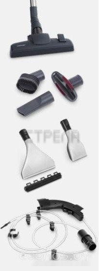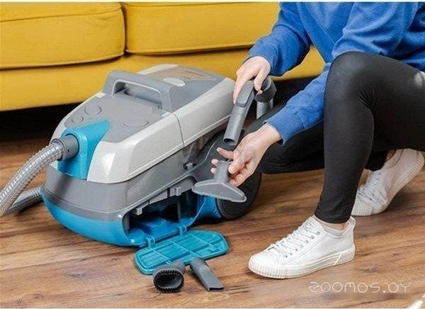 Насадки в комплекте: для мебели, насадка для влажной уборки, насадка для сбора воды, для ковра и пола, щелевая, для мягкой мебели