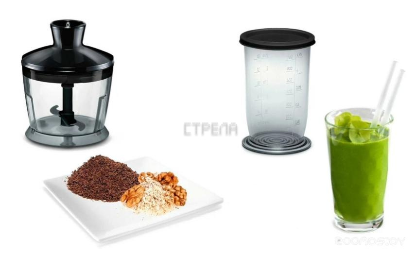Комплектация: документация, мерный стакан, насадка-блендер, насадка-измельчитель
