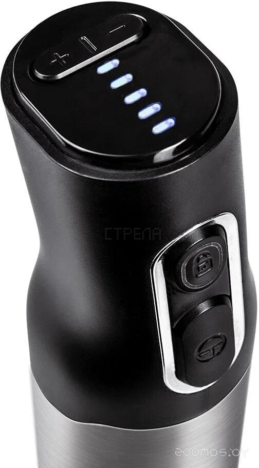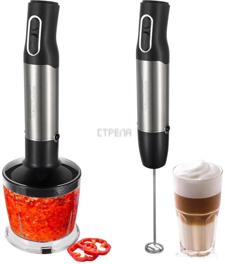 Комплектация: чаша для измельчения, насадка-вспениватель молока, зарядное устройство, насадка-блендер, мерный стакан, насадка-измельчитель, документация, насадка-венчик