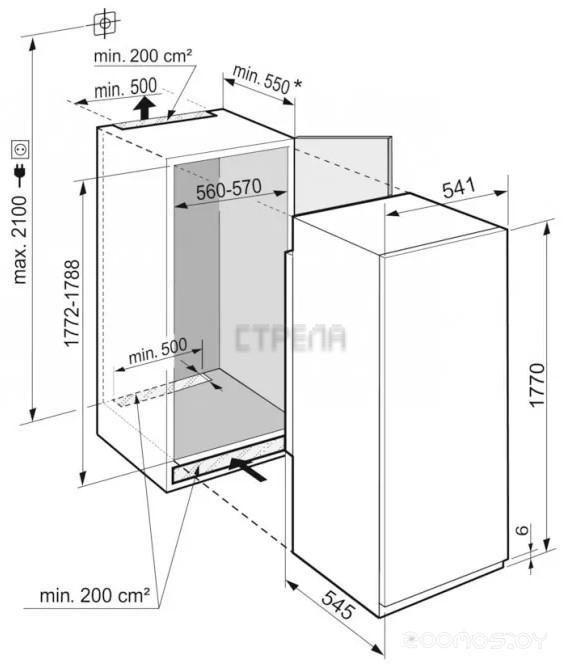 Глубина ниши для встраивания: 55 см