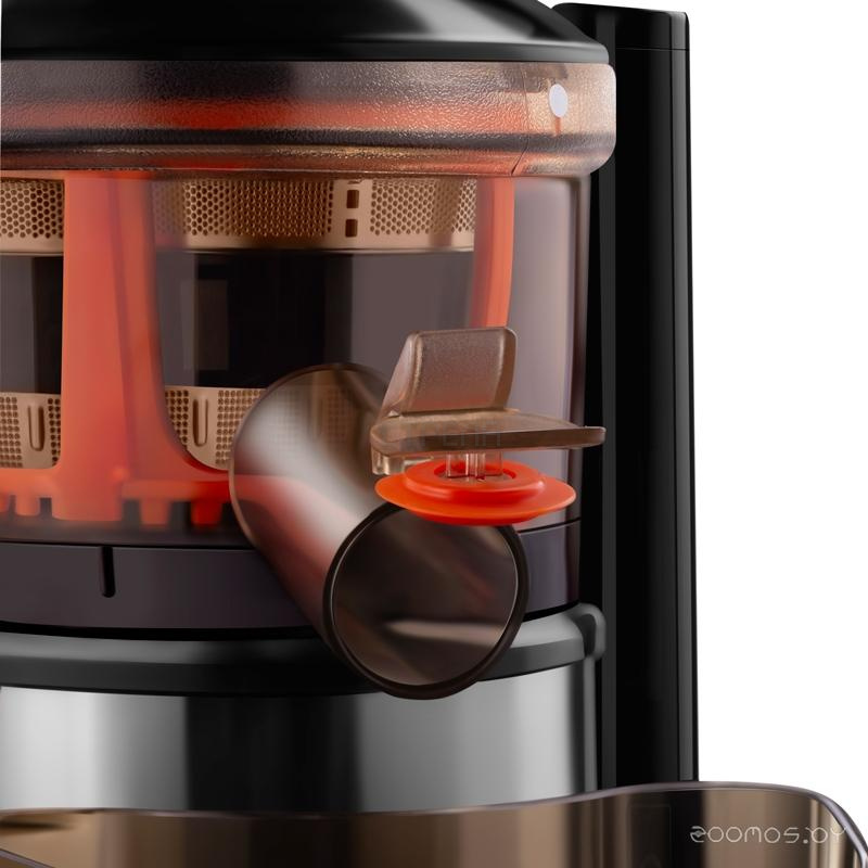 Устройство оснащено функцией «Реверс» для удобного пользования в случае застревания ингредиентов и функцией «Капля-стоп», что позволит предотвратить проливание сока на рабочую поверхность.