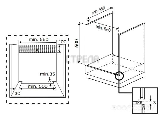 Размеры ниши для встраивания: