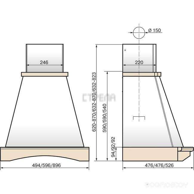 Диаметр патрубка воздуховода: 150 мм