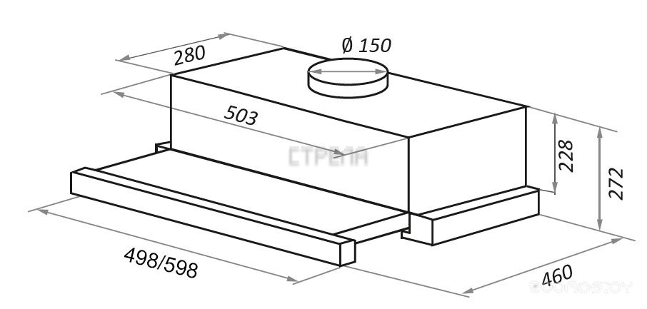 Диаметр патрубка воздуховода: 150 мм