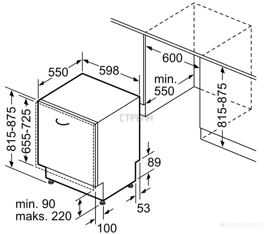 Высота ниши для встраивания: 87.5 см