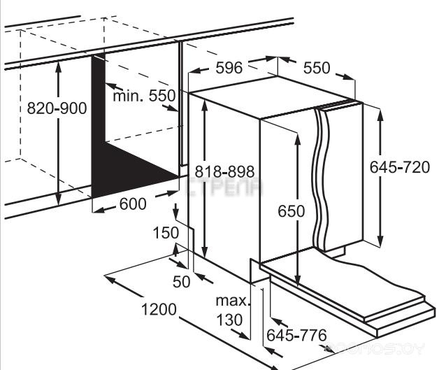 Глубина ниши для встраивания: 55 см