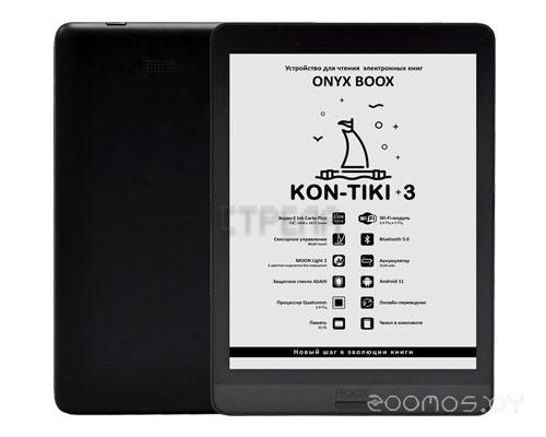 ONYX BOOX KON-TIKI 3 — устройство для чтения электронных книг с 7,8-дюймовым экраном E Ink Carta Plus с подсветкой и сенсорным управлением. Современный 4-ядерный процессор в сочетании с 3 ГБ оперативной памяти обеспечивают комфортную скорость работы при любых сценариях использования устройства. Встроенный модуль Wi-Fi обеспечивает возможность скачивать книги из сети Интернет и пользоваться различными сетевыми сервисами, а поддержка Bluetooth — подключать внешние устройства. Благодаря увеличенному экрану данная модель позволит с комфортом совмещать чтение художественной и технической литературы. Android 11 дает возможность устанавливать и использовать сторонние приложения и делает устройство более универсальным. Ридер имеет компактный легкий корпус, экран дополнительно закрыт защитным стеклом. В комплекте с ONYX BOOX KON-TIKI 3 поставляется защитная обложка.