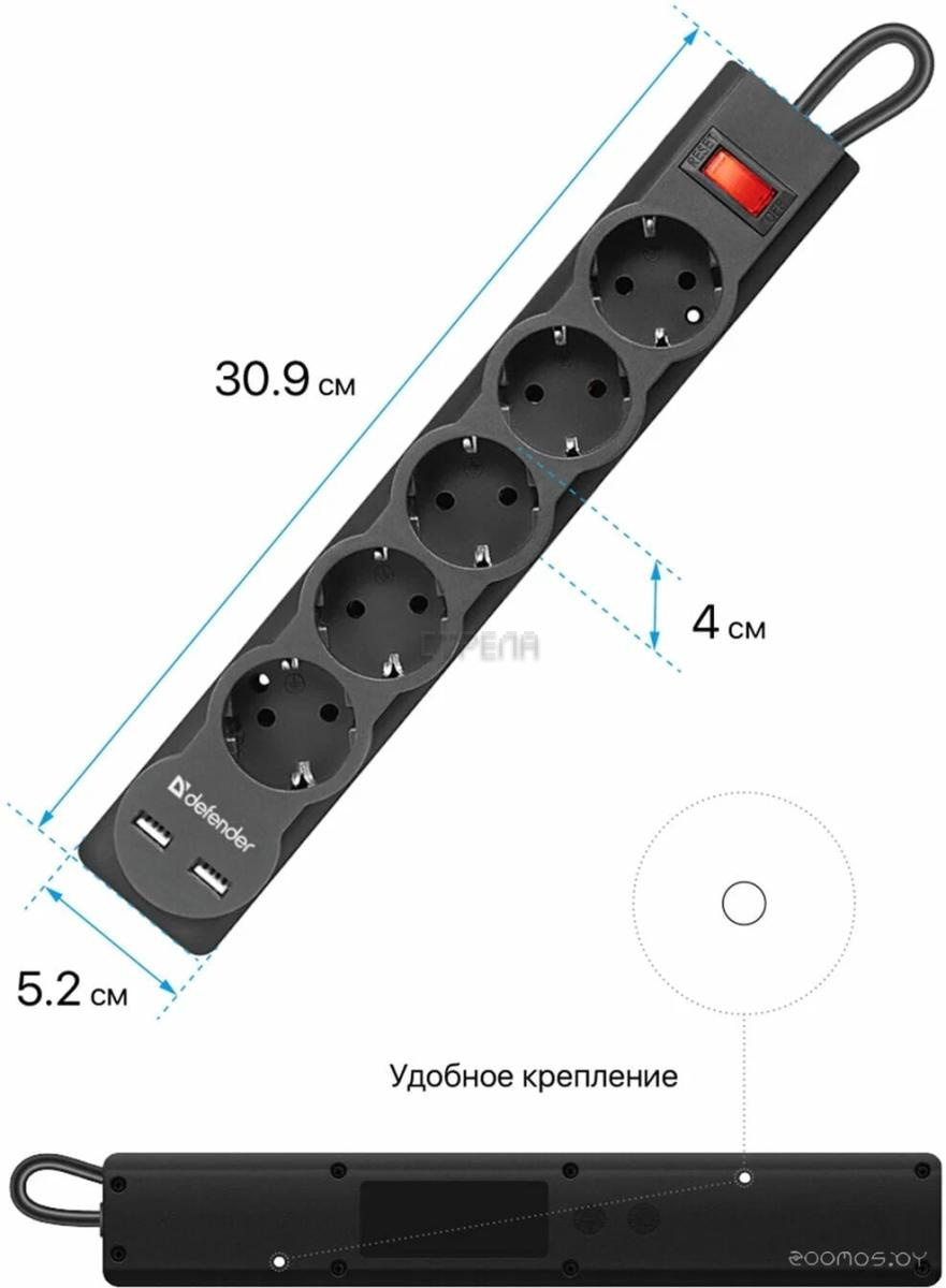 Общее количество выходных розеток: 5