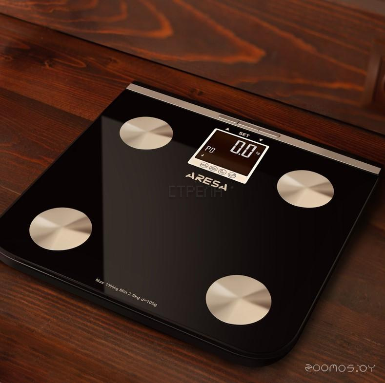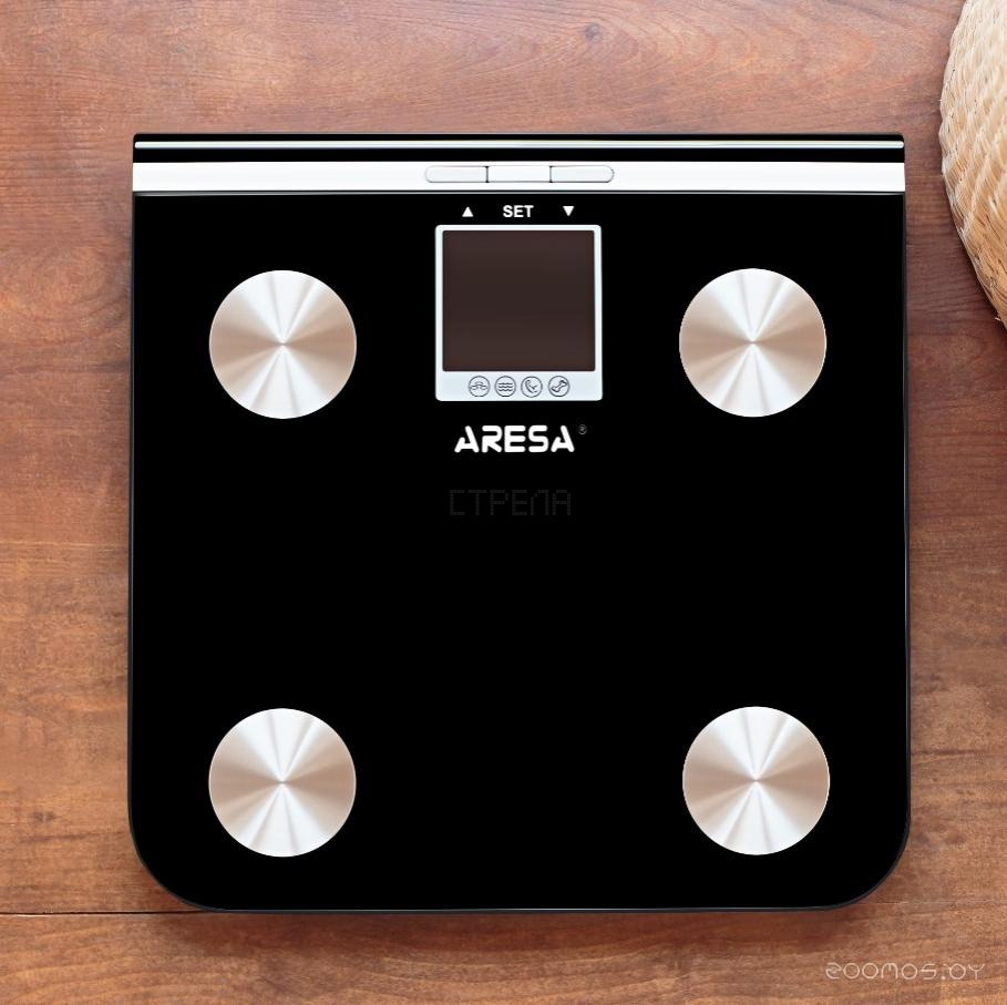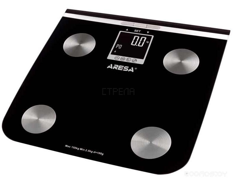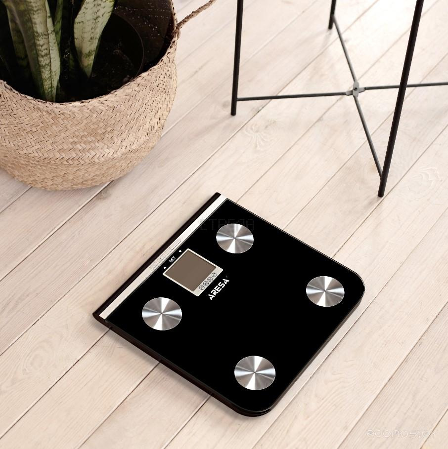 Весы Aresa SB-306 позволяют измерять вес с точностью до 100 г. Кроме того, представленная модель способна определять долю воды, мышечной, жировой и костной ткани в организме, а также рассчитывать ИМТ. Устройство запоминает данные о 10 пользователях. Для работы весов потребуется 2 батарейки типа ААА, имеется индикатор уровня их заряда.