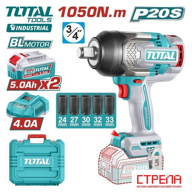 - Гайковерт - 1 шт.- Аккумулятор 5,0 Ач TFBLI20531 - 2 шт.- Зарядное устройство TFCLI20411 - 1 шт.- Глубокие ударные головки (24, 27, 30, 32, 33 мм) - 5 шт.- Клипса для крепления на ремень - 1 шт.- Инструкция- Кейс |