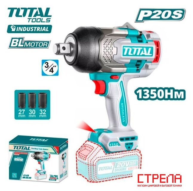 - Гайковерт - 1 шт.- Торцевая головка (27, 30, 32 мм) - 3 шт.- Инструкция- Коробка |