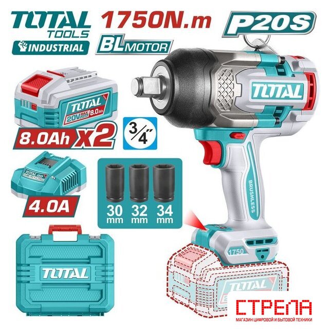 - Гайковерт - 1 шт.- Аккумулятор 8.0 Ач TFBLI2108 - 2 шт.- Зарядное устройство TFCLI20411 - 1 шт.- Ударные головки (30, 32, 34 мм) - 3 шт.- Инструкция- Кейс |