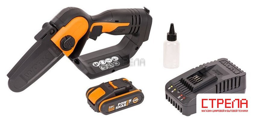 - Пила аккумуляторная WORX WG324E- Аккумулятор WORX WA3551 2 Ач- Зарядное устройство WORX 20В 2А- Цепь- Шина- Защитный чехол для цепи |