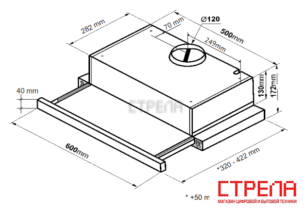 Диаметр воздуховода, мм